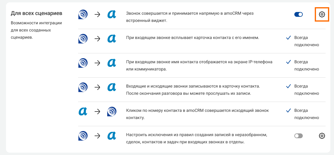 По умолчанию карточка всплывает после звонков длительностью больше 30 секунд, чтобы сотрудники заполняли результаты только по релевантным вызовам. Но если у вас немало коротких звонков — например, для подтверждения записи на услугу — вы можете поменять эту настройку.