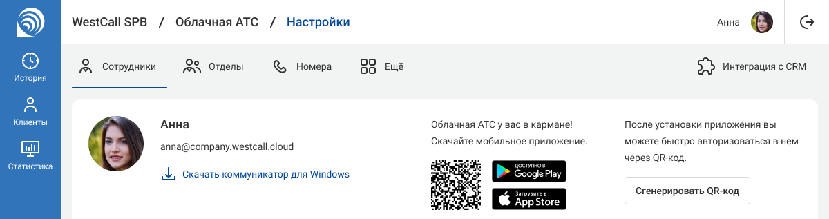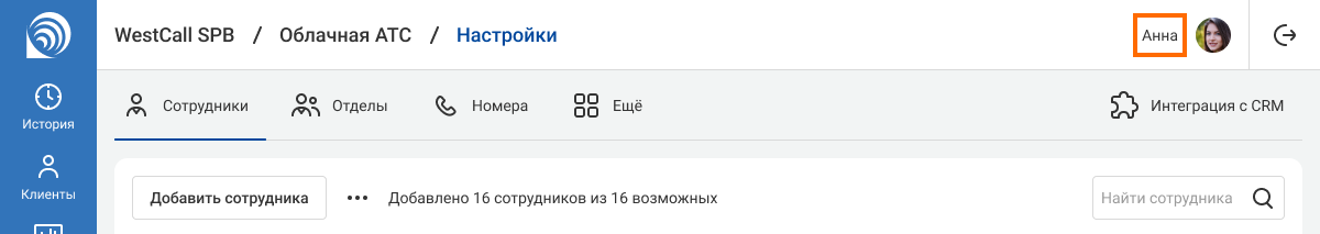 Возможности личного кабинета АТС не зависят от уровня доступа. Все, что описано ниже, настраивается одинаково у администраторов, пользователей и ограниченных пользователей.