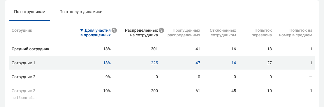 • разбираться, почему звонки в отдел остались без ответа и кто из сотрудников чаще их пропускает.