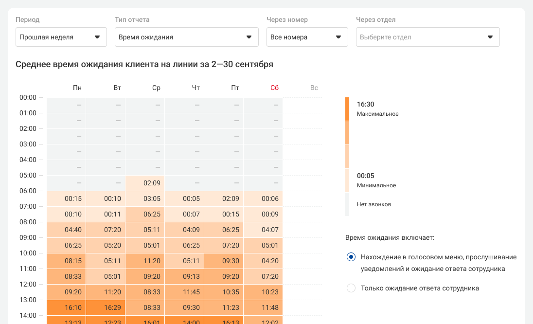 - только ожидание ответа сотрудника — то есть как долго клиенты слушали гудки.