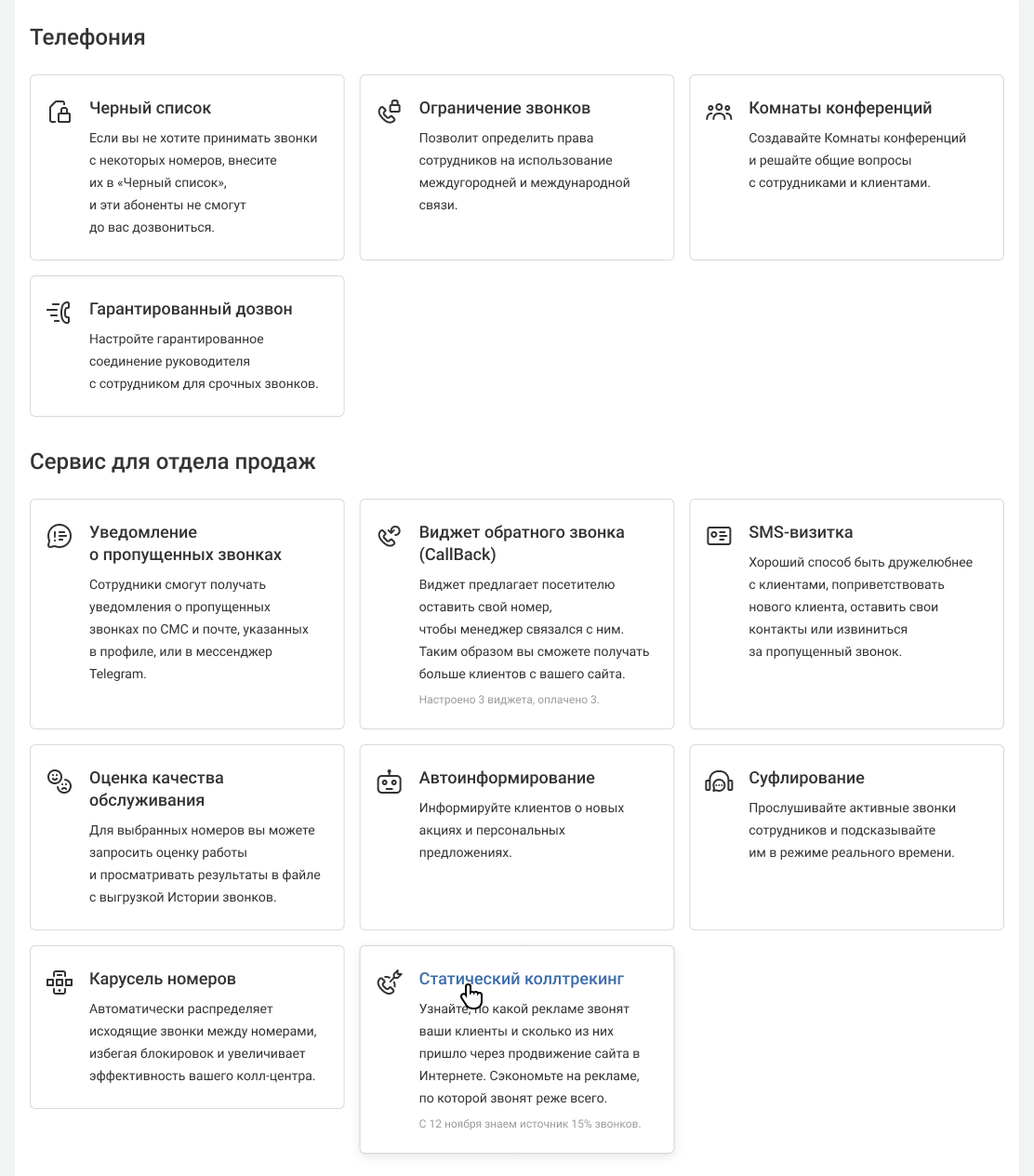 1. Перейдите в раздел «Настройки» — «Еще» — «Статический коллтрекинг».