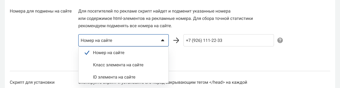 Чтобы ваш сайт автоматически показывал нужный рекламный номер посетителю в зависимости от того, откуда он пришел, настройте подмену номеров.