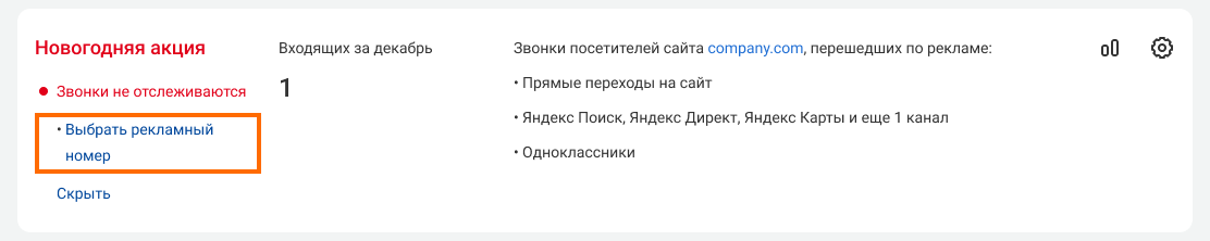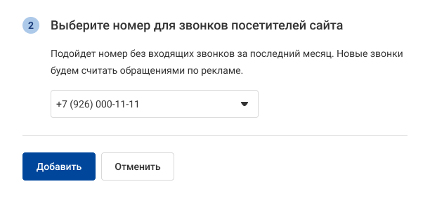 6. Выберите номер, звонки на который будут считаться переходами с выбранных рекламных каналов.