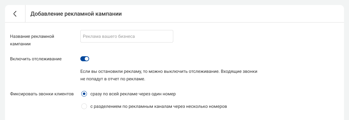 3. Введите название рекламной кампании и выберите, как будут отслеживаться звонки клиентов:
