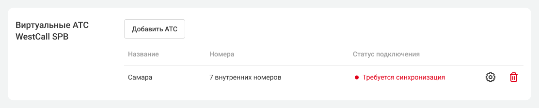 Если автосинхронизация не произошла, в настройках подключения к другой АТС появится кнопка «Синхронизировать». Нажмите ее, чтобы выполнить синхронизацию вручную.